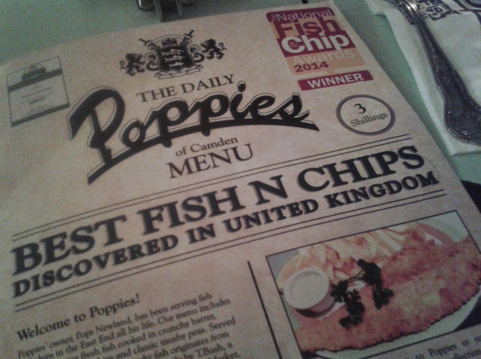 O dia terminou em Candem Town, mais especificamente no restaurante Poppies (com um ambiente fantástico, música ao vivo e funcionárias vestidas a rigor) para experimentarmos a comida tradicional: fish and chips.
