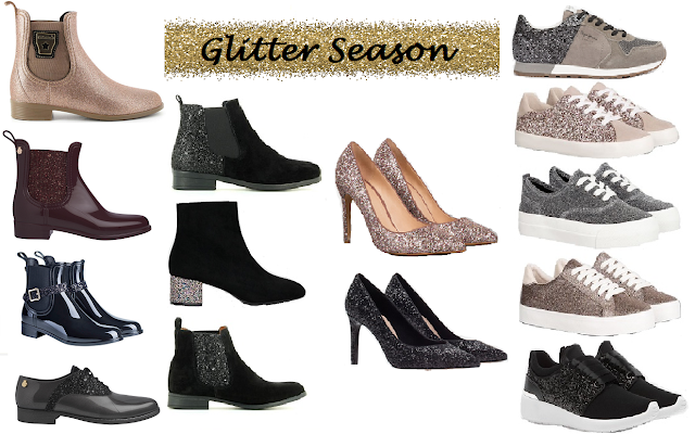 Se me seguem há algum tempo sabem que sou apaixonada por peças com glitter, tendência que domina principalmente no meu calçado, por isso escolhi alguns modelos para partilhar: